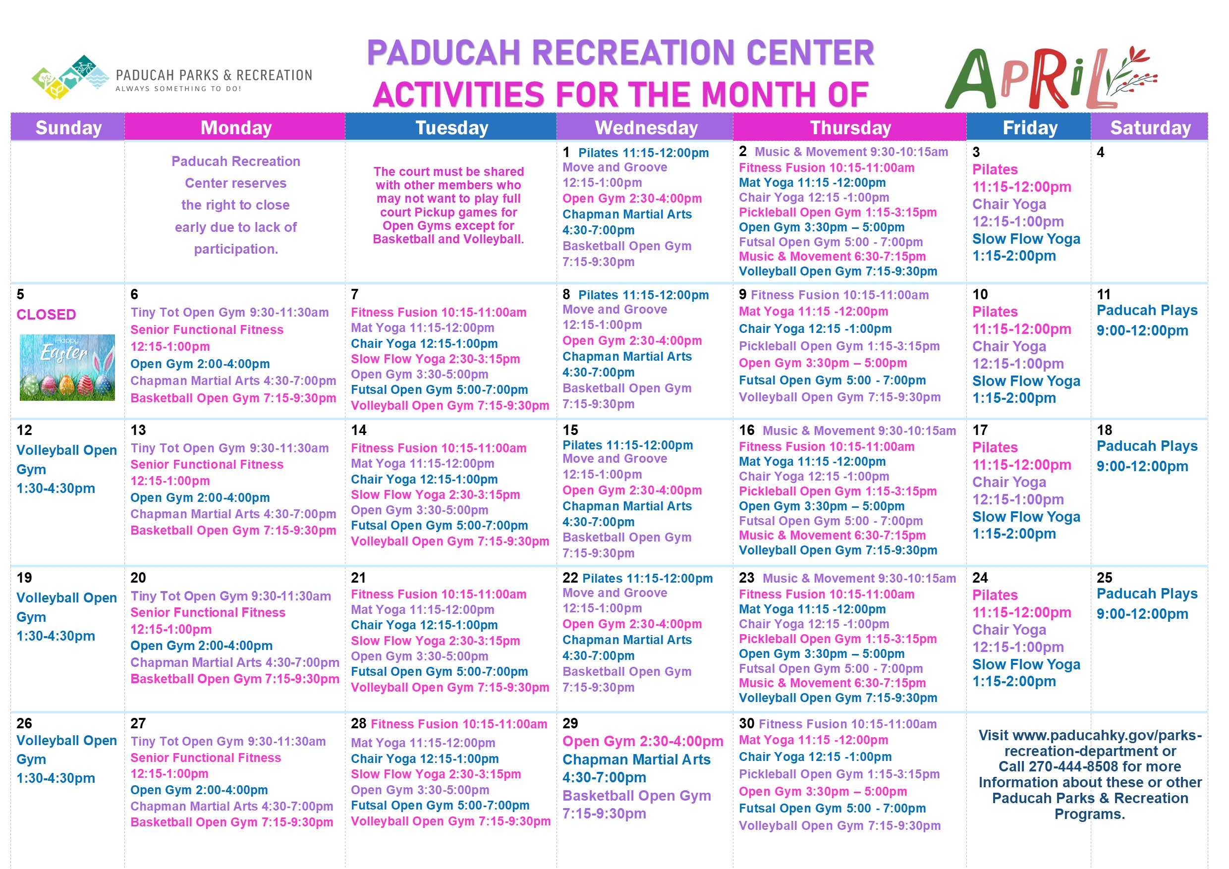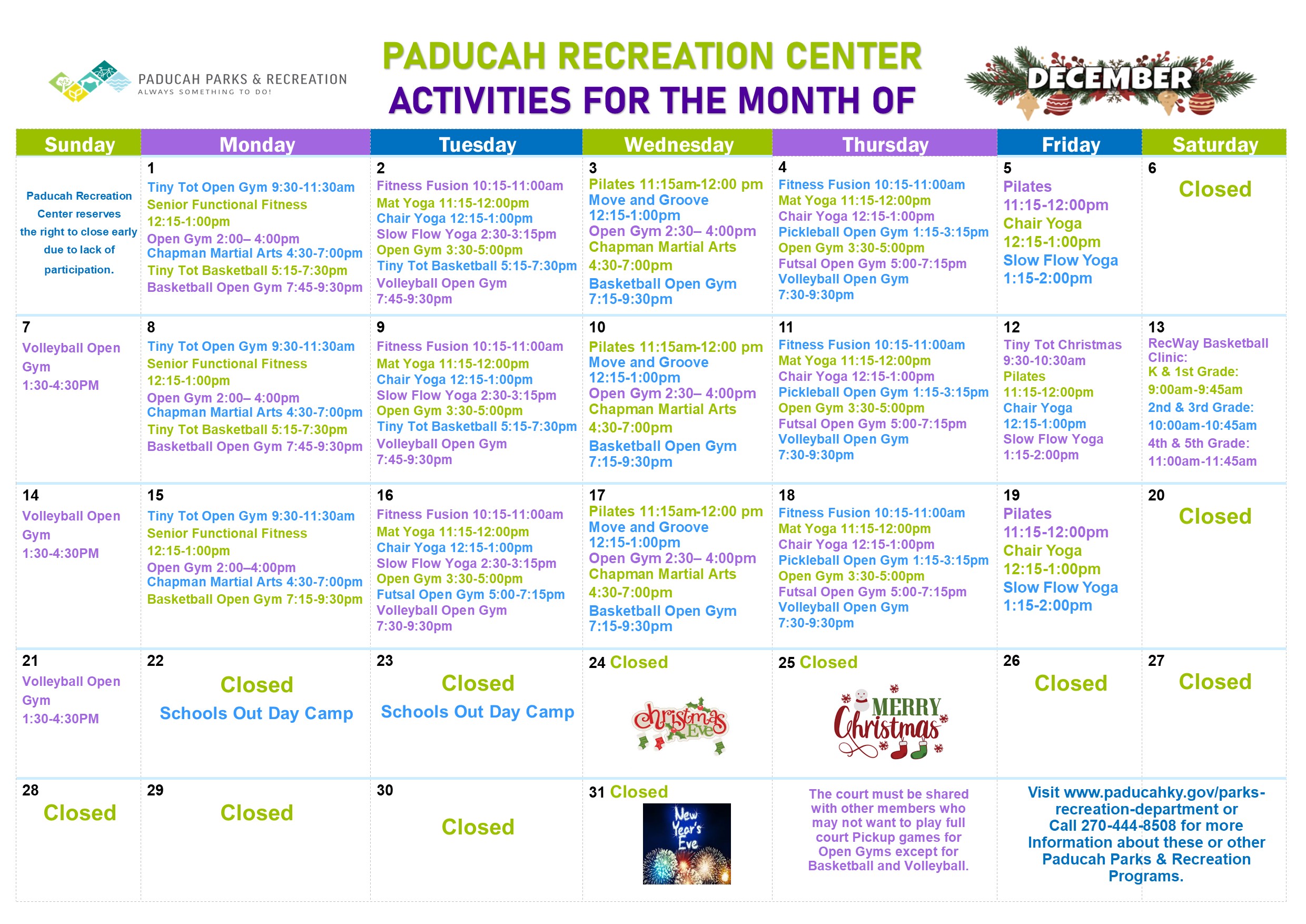 The Paducah Recreation Center is available for reservations for birthday parties and athletic/fitness activities only.