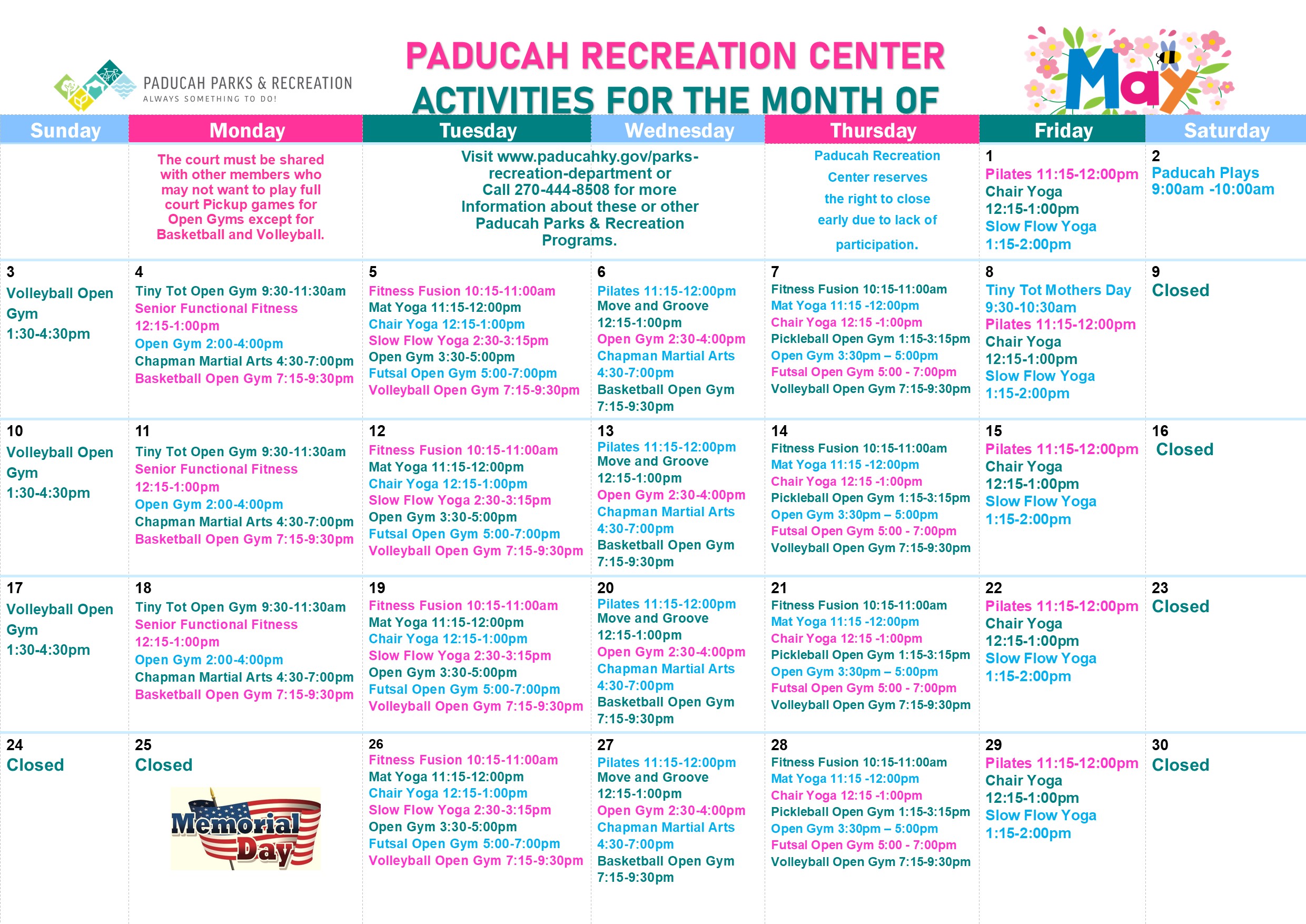 • Paducah parks & Recreation is not responsible for lost or stolen items.